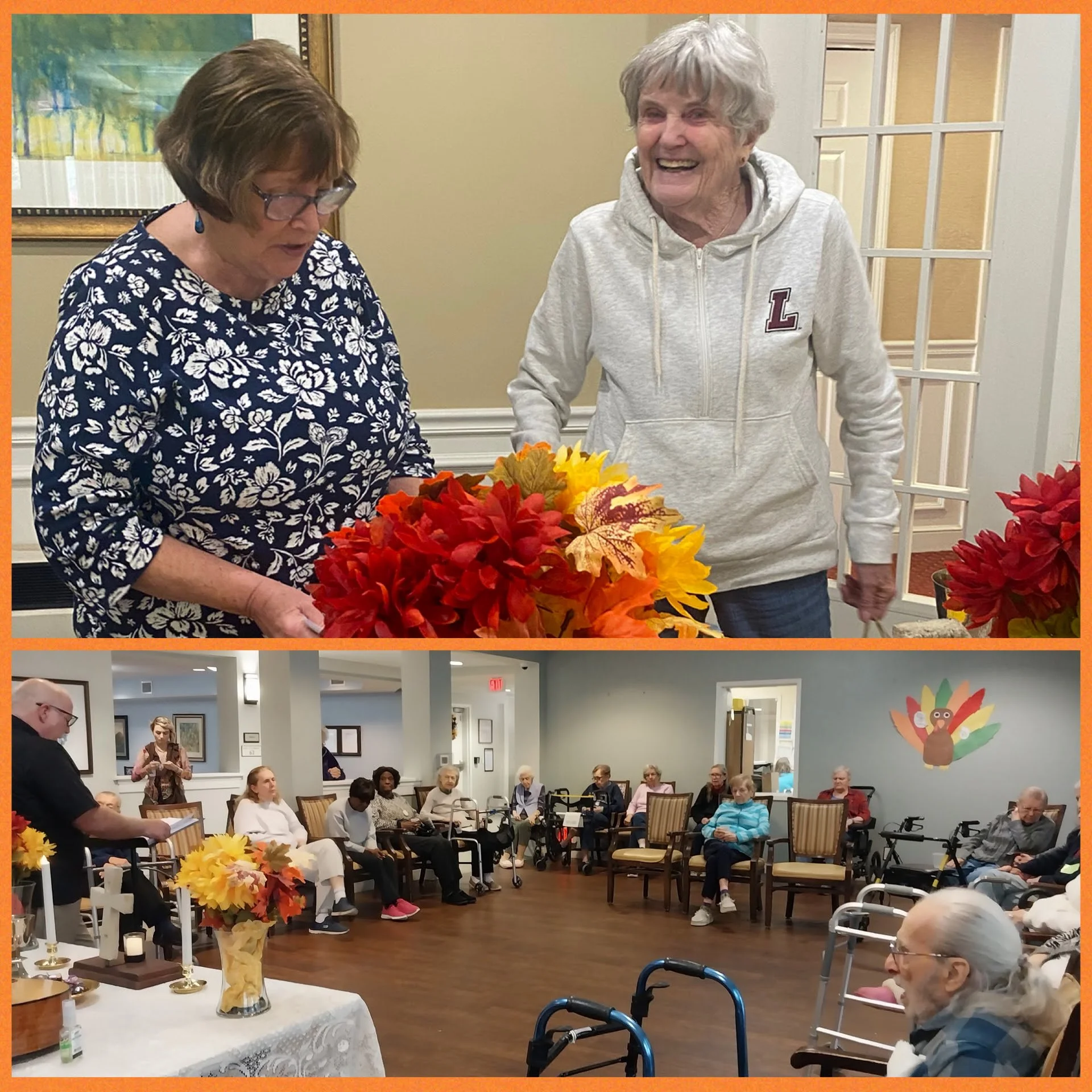 Chatfield was small in size but that never matters to us. It seems as if the scheduling is difficult but we continue to show up. We asked our friends to help hand out readings, take one if they like, and to set up and take down the communion table. It is healing an offers dignity when you ask resident to help. I personally love to have folks in wheel chairs help me to fold the table linen.